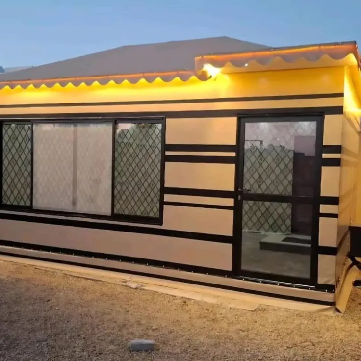 نستخدم مواد عالية الجودة، تركيب محكم، وعزل ضد الحرارة والمطر لضمان خيمة عملية وراقية الاستخدام.